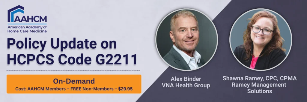 G2211 was introduced in 2024 to reflect the complexity of longitudinal evaluation and management care. However, home visits were originally excluded from its use. Over the past two years, the Academy—through the work of our Public Policy Committee and the support of our members—advocated strongly to correct this oversight.